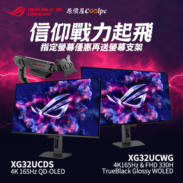 OLED信仰戰力起飛!ROG STRIX XG32UCWG/ XG32UCDS螢幕上市優惠價!