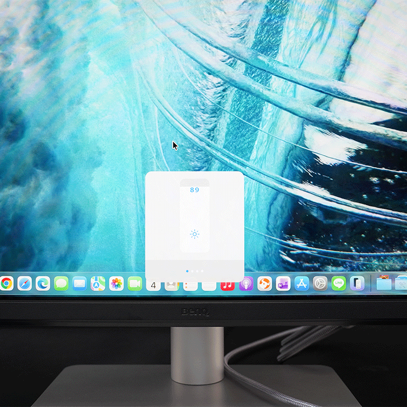 M-book iDevice 色彩同步模式,可以透過筆電的鍵盤來調整螢幕亮度,甚至是筆電螢幕上的感應器偵測光源太暗,自動調整亮度,BenQ 的螢幕也會跟著調整。