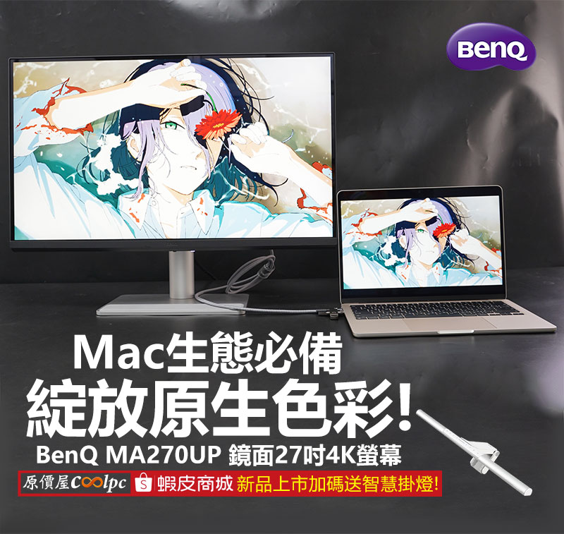 【促銷+開箱】 Mac 生態必備,綻放原生色彩!BenQ MA270UP 27 吋 4K 鏡面護眼螢幕,上市先省一千加碼再送螢幕掛燈!