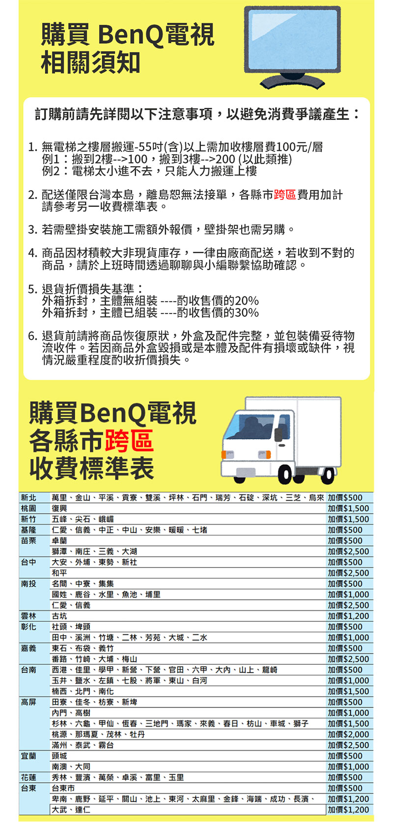 第一重:送壁掛架及基本壁掛安裝(無電梯、各縣市跨區費用另計)