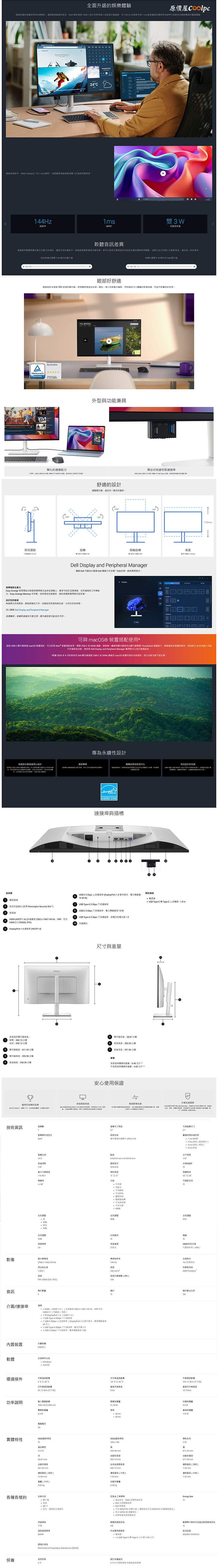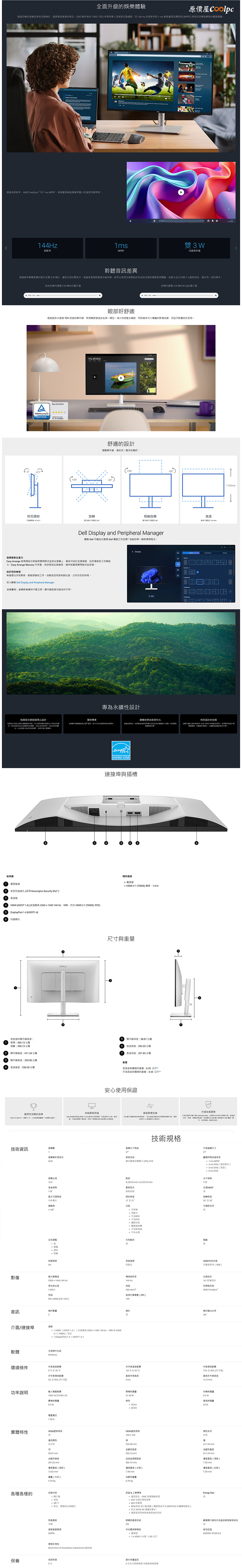 DELL S2725DC〈QHD/1H1P1C/IPS/144Hz/含喇叭/無亮點/四年保〉可升降旋轉, $10888 ↘$9988 蝦皮商城下單