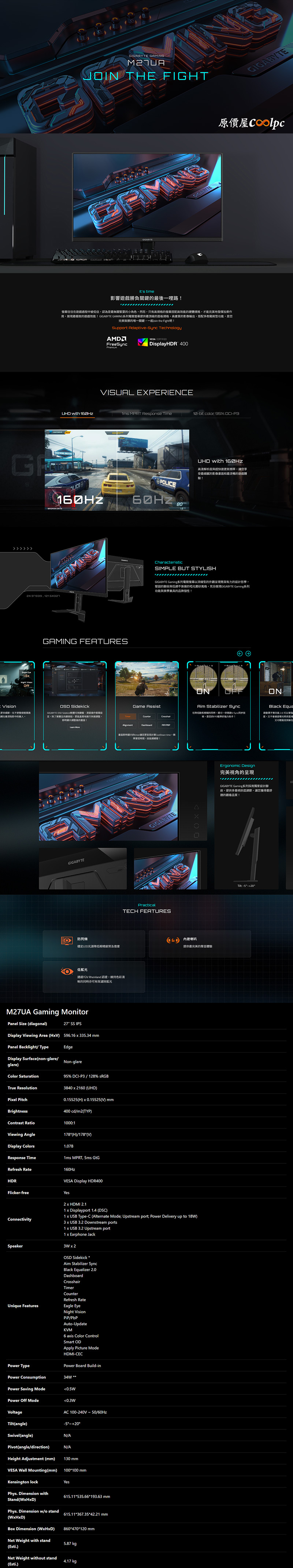 技嘉 M27UA〈2H1P1C/IPS/160Hz/HDR400/HDMI 2.1〉