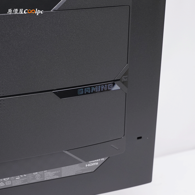 右邊的 GIGABYTE 雷射標籤 LOGO ,不同角度看會有類似 RGB 的效果。