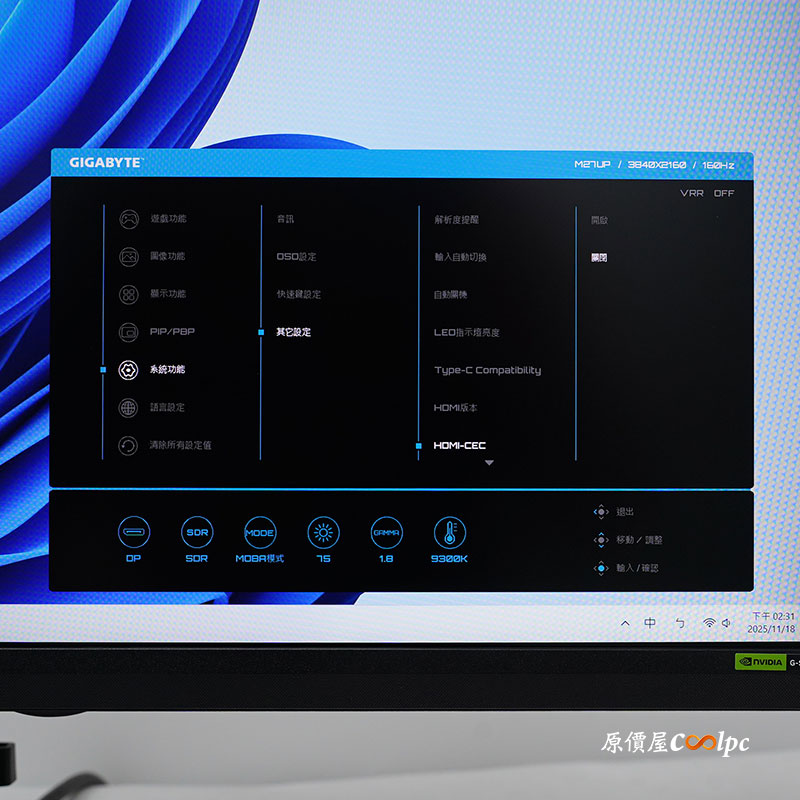 螢幕有支援 HDMI-CEC 功能,如果小主機有支援一鍵啟用,建議把它打開,之後開關機電腦,就不用再多按螢幕電源按鈕來關閉螢幕了。