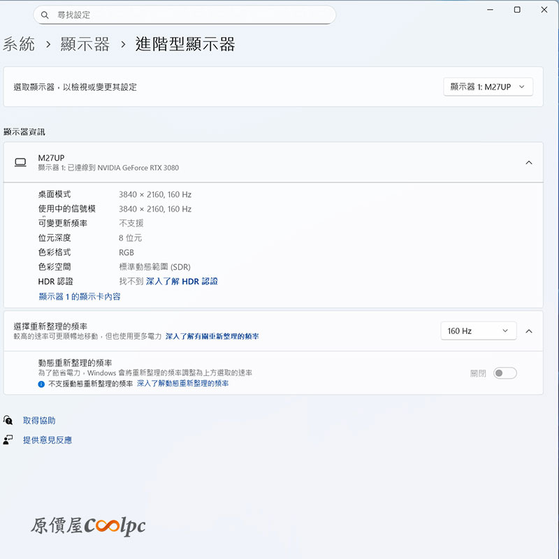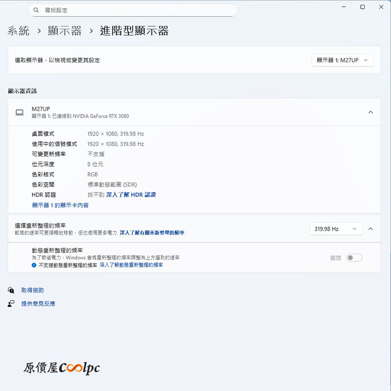 螢幕搭載的 4K@160Hz、FHD@320Hz 雙模模式,建議開遊戲前就先調好使用模式,省了進去遊戲還要調整解析度等繁雜設定。