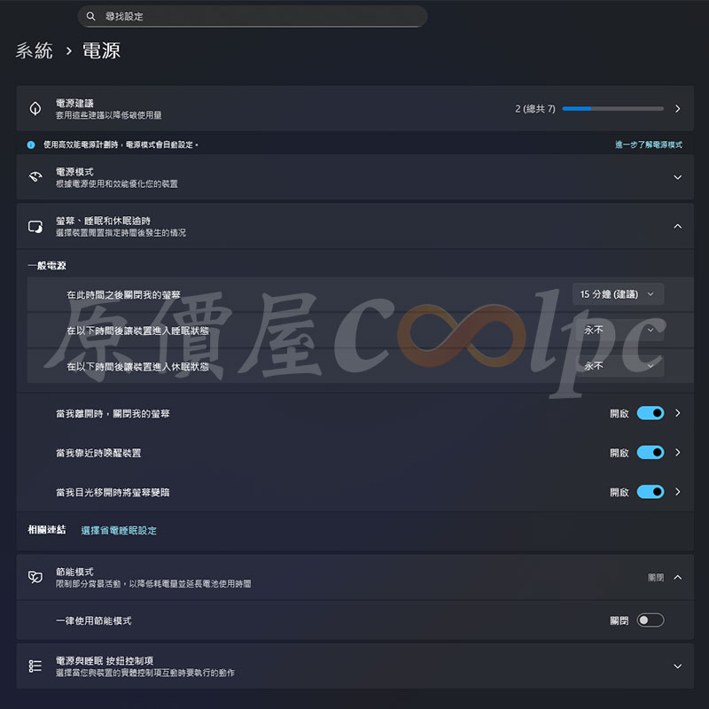 要使用人體偵測與接近時喚醒/離開鎖定功能,選單內有兩種方式,一種是系統模式,另外一種是監控模式,小編示範的是系統模式,螢幕設定好此功能後,Windows 11 設定選單,電源模式底下,記得要連接 Type-A 轉 Type-B 的線材到電腦,一般電源選單才會出現底下三個功能,將那三個選項開啟之後,就能開始使用人體偵測、離開自動關閉螢幕與接近喚醒螢幕功能啦。