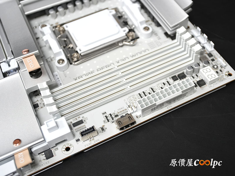 記憶體旁還有除錯燈號 (Debug LED),讓專業 DIY 玩家在進行硬體除錯或超頻設定時,能第一時間精準掌握系統狀態。