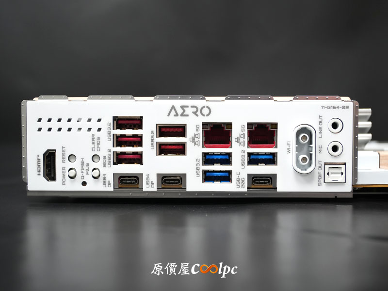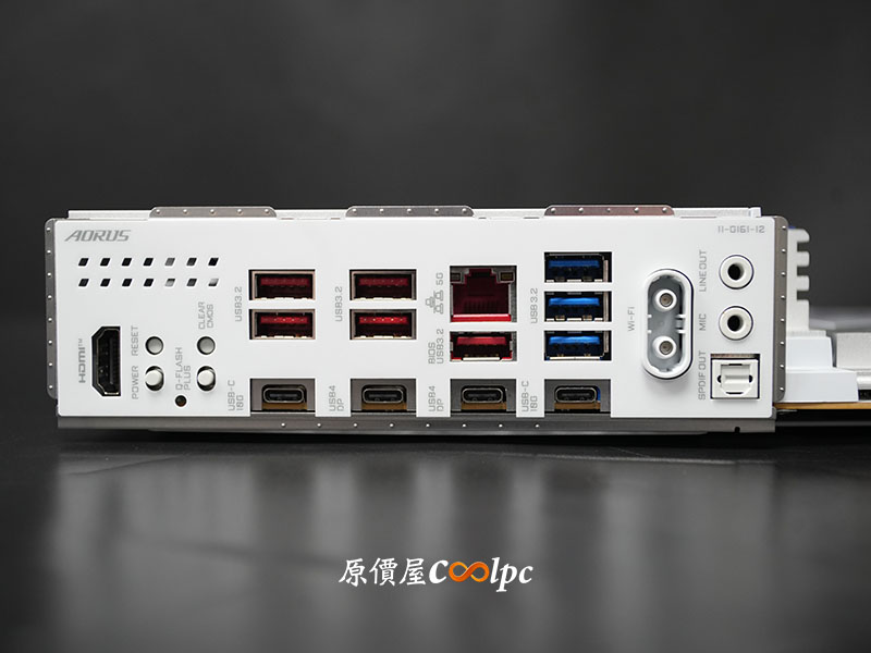 這 I/O 配置不僅高規又豐富,有雙 5G LAN、雙 USB4(40Gbps) 連接埠(DP輸出功能視 CPU 而定),還有 USB 20Gbps(Type-C)、數個 USB 10Gbps 介面、Wi-Fi EZ-Plug  快拆天線。同時整合多個實體功能按鍵(Power、Reset、Q-FLASH PLUS、CLEAR CMOS)。