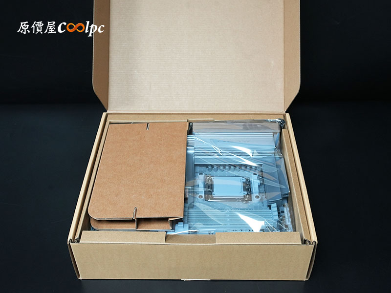 主機板盒打開後,內部共有三層,上層為技嘉 X870E AORUS XTREME X3D AI TOP 主機板,二、三層為主機板配件。