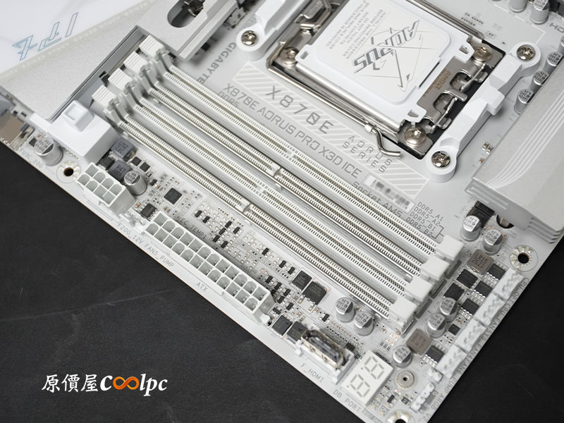 記憶體旁還有除錯燈號 (Debug LED),讓專業 DIY 玩家在進行硬體除錯或超頻設定時,能第一時間精準掌握系統狀態。