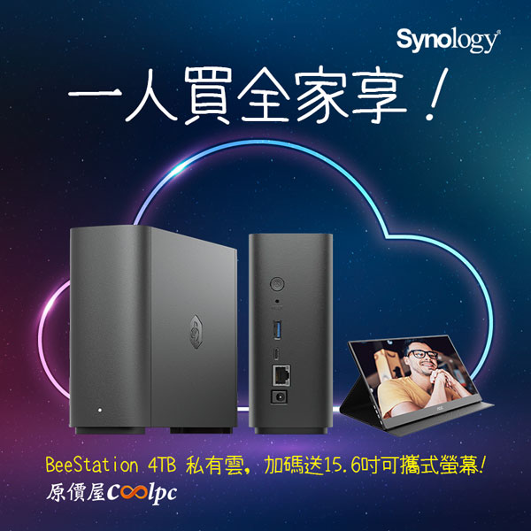 一人買全家享!Synology BeeStation 4TB 私有雲加碼再送可攜式螢幕!