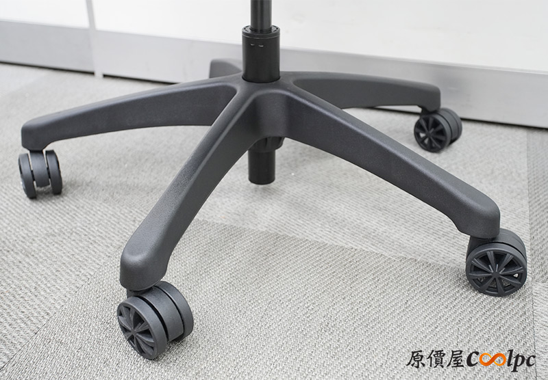 底部五星椅腳搭配高品質自鎖輪,滑動起來需要比較大的力道,不過也相對的平穩很多。