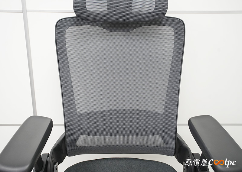 椅背大面積網布防悶熱,從側面看椅背形狀就像脊椎曲線一般,能夠給予腰背良好的支撐,釋放身體的壓力。