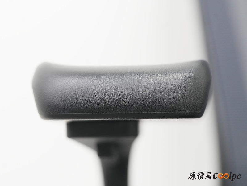 左右扶手也是符合人體工學,扶手表面左右高起,更貼近手臂的形狀,而且調整高低的按鈕在下方,這點倒是挺特別。