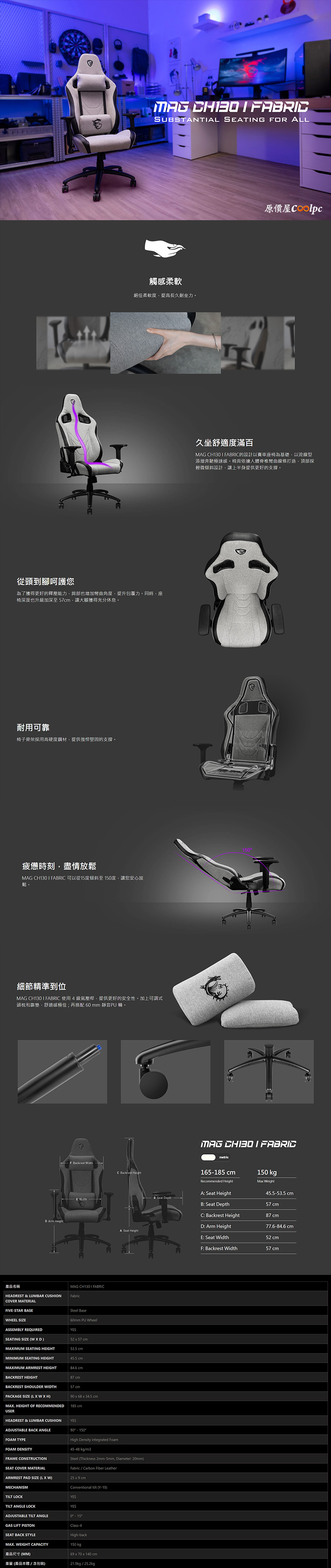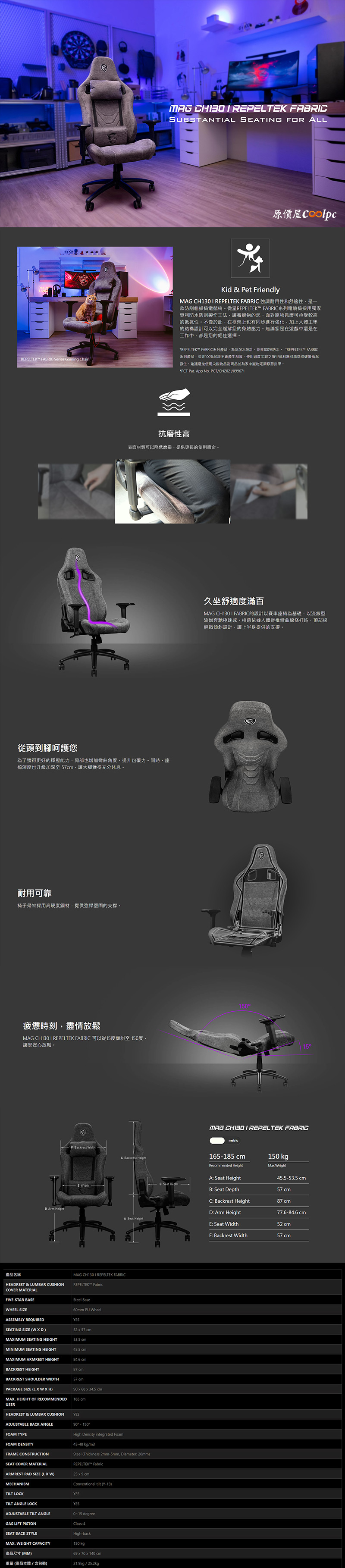有了微星MSI龍椅,隨時讓你活力滿滿,不僅能夠讓身體放鬆、舒緩疲勞,對於專心打遊戲也有幫助,特定款式甚至還能防貓抓防潑水!這回微星MSI一次帶來「MAG CH130I REPELTEK FABRIC」、「MAG CH130I FABRIC」、「MAG CH120I」三款電競椅促銷,其中MAG CH130I REPELTEK FABRIC就是特別採用專利防刮防潑水製作工法…