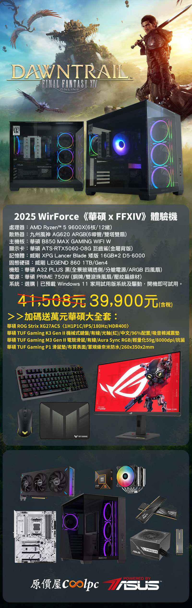 萬元華碩全套 0 元送!2025 WirForce《華碩 x FFXIV》體驗機釋出。