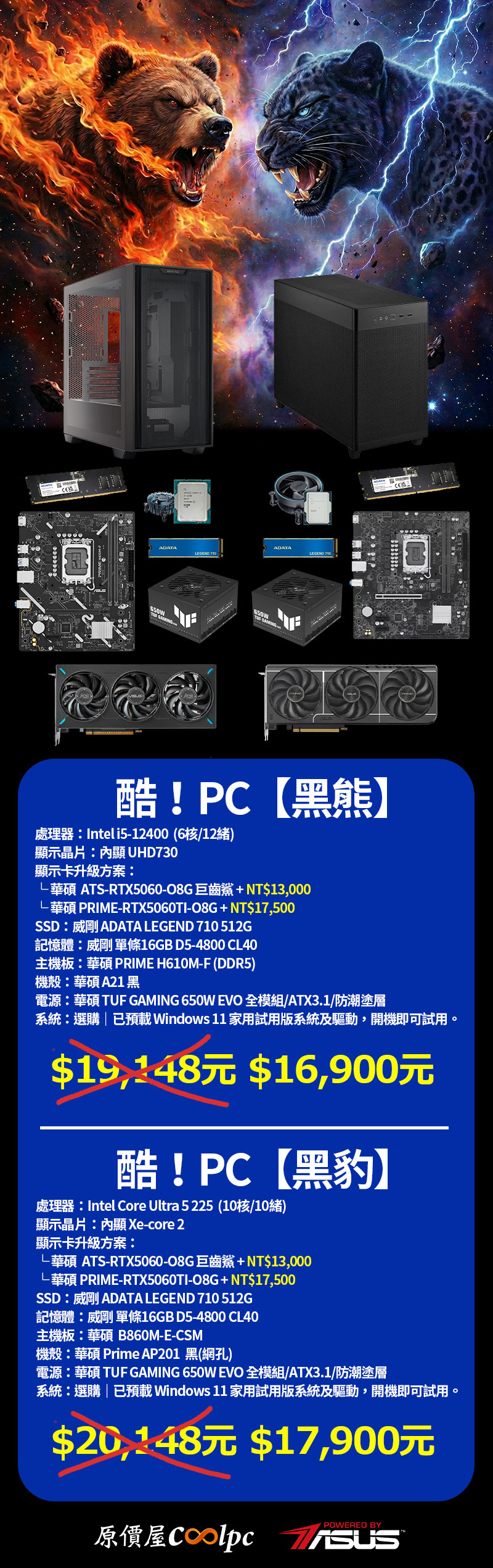 酷!PC【黑熊】NT$19,148元 NT$16,900元起 | 限量 100 台