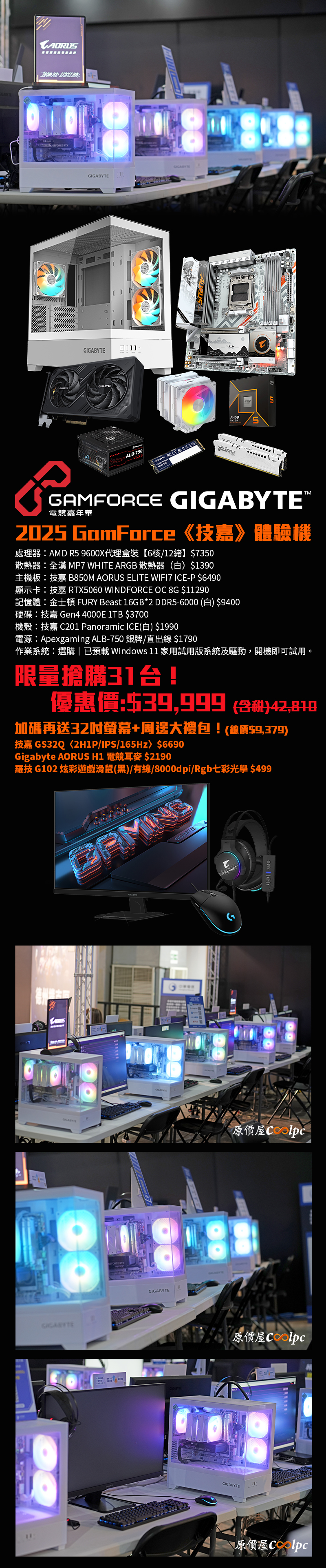 【即刻搶購】僅此 31 套!雕妹珍品 2025 GamForce《技嘉》體驗機一口價$39999,還有近萬元電競禮包 0 元送!