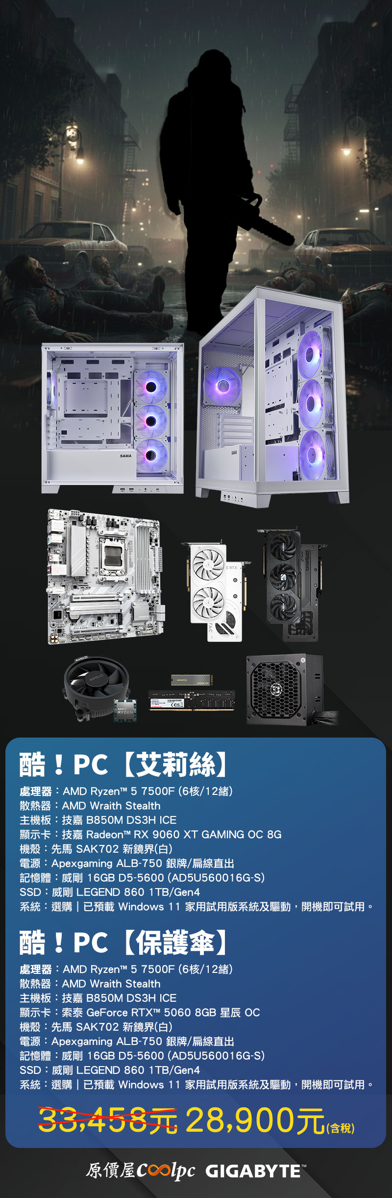即便在萬物齊漲的市場環境,原價屋不談無奈,我們直接用行動來抵銷漲勢!與原廠聯手推出兩台專為遊戲而生的酷!PC【艾莉絲】【保護傘】。在遊戲建議配備的需求上,將入手門檻降到最低!五萬有找?四萬有找?不!只要 NT$28,900 就能整套帶回家!但我們必須坦白,由於預算上有嚴格的總量管控,這波戰備物資合計僅能準備各 80 套!僅接受原價屋線上估價系統下單,並由客服專屬窗口協助處理。本次主機統一由五股產線進行組裝與測試,您可以選擇宅配直達安全屋,或約定至原價屋全台任一門市親自點交。